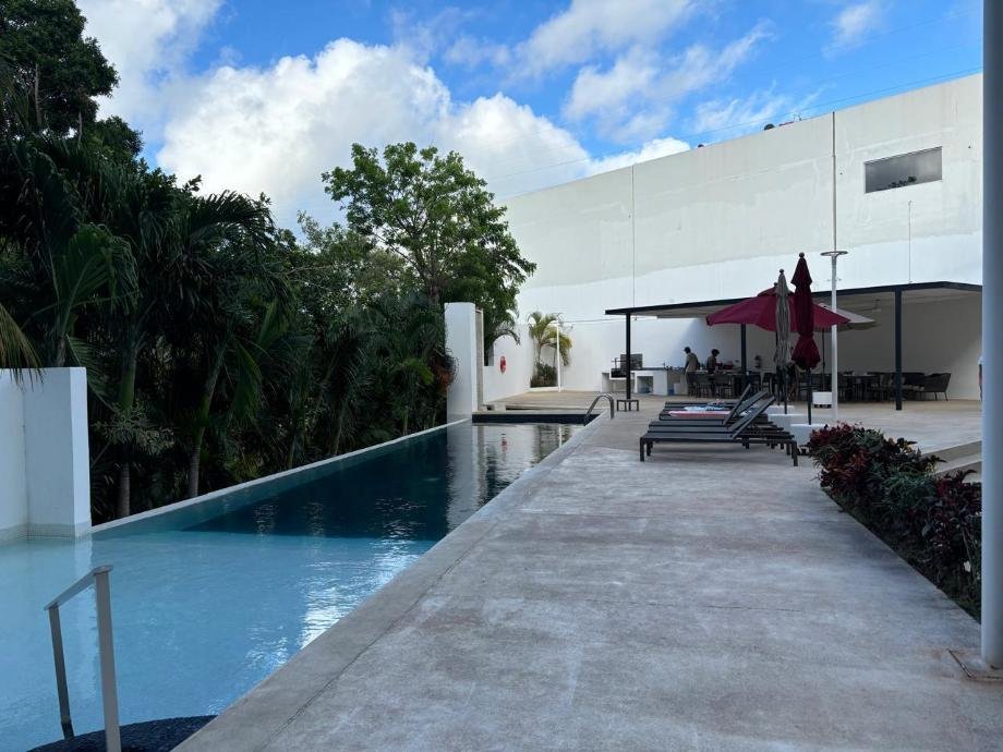 Disfruta de amenidades de lujo, como una espectacular alberca con camastros, una palapa con asador ideal para reuniones, un amplio jardín natural, una sala de eventos, un moderno co-working para trabajar con comodidad y una ludoteca para los más pequeños.
